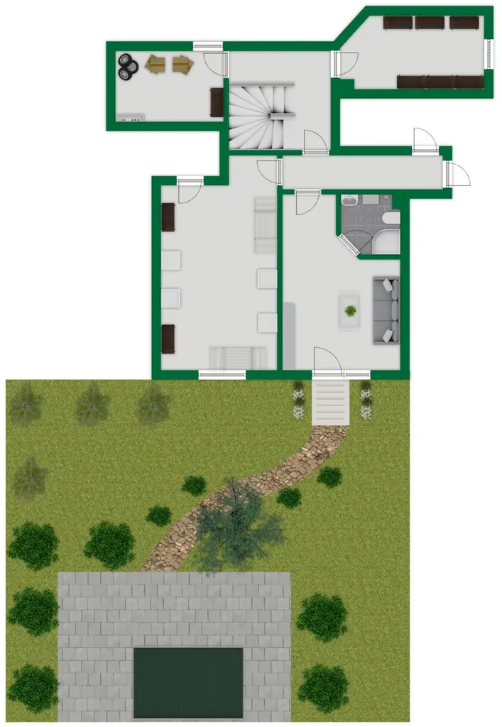 Zusätzlich ist der Wohnung auch eine Gartenfläche zugeordnet, welche vom Hobbyraum im Gartengeschoss aus betreten werden kann.