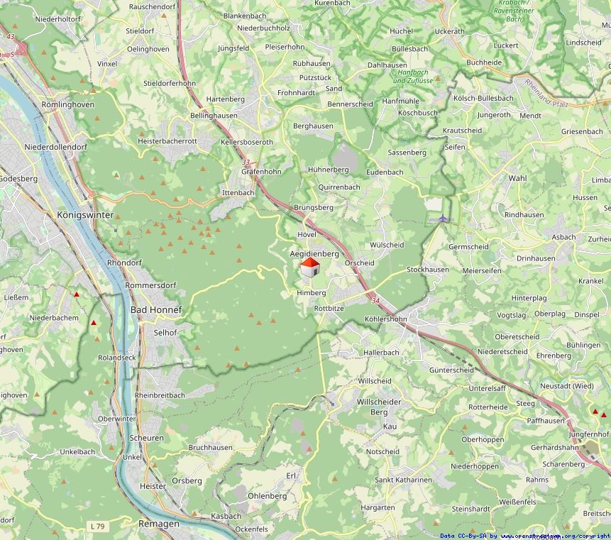 Das Gewerbeobjekt in der Aegidienberger Straße 29b befindet sich im Ortsteil Aegidienberg der Stadt Bad Honnef im Rhein-Sieg-Kreis in Nordrhein-Westfalen. Die Lage vereint eine verkehrsgünstige Anbindung mit einem naturnahen Umfeld im Siebengebirge.