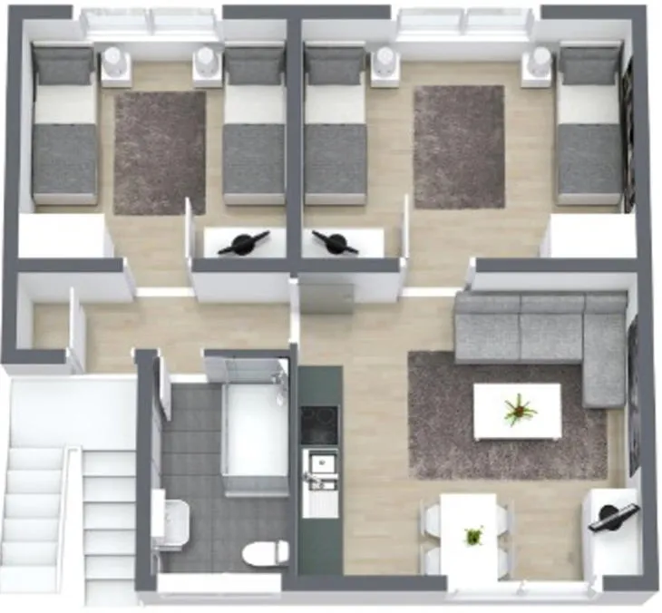 Die vier Einheiten im Erd- und Obergeschoss verfügen jeweils über ca. 51,50 m² Wohnfläche. In allen Wohnungen wurden bereits neue Zu- und Abwasserleitungen installiert. Die Einheiten sind geschmackvoll möbliert und werden aktuell verpachtet bzw. als Ferienwohnungen genutzt.