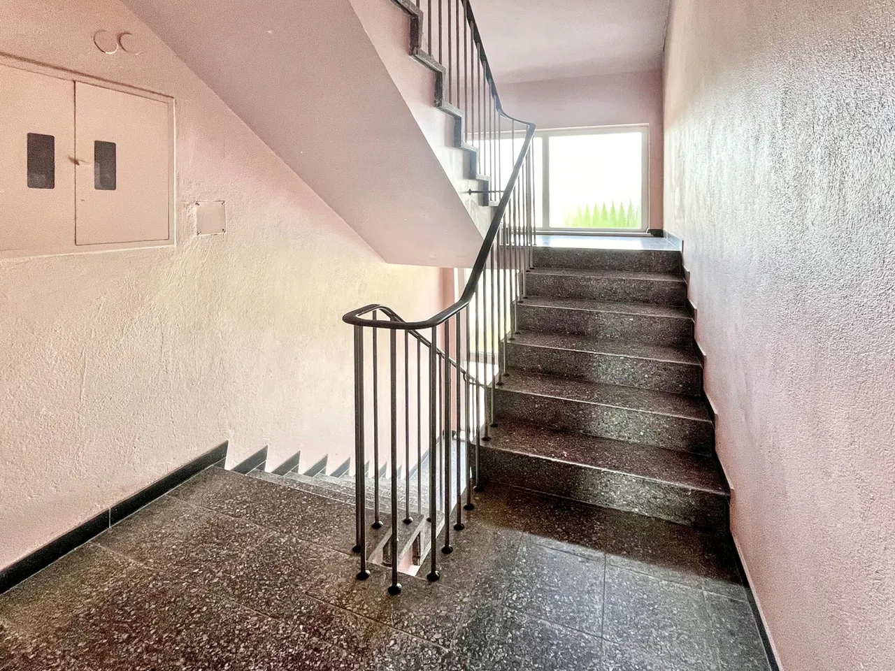 Sowohl das Dach als auch die Fassade zur Garagenseite wurden bereits in den 1990er Jahren wärmegedämmt und tragen zur Energieeffizienz des Gebäudes bei. Der überwiegende Teil der Wohnungen – mit Ausnahme des Apartments im Erdgeschoss und der Dachgeschossfläche – verfügt über eigene Loggien und damit über angenehme Außenbereiche mit zusätzlichem Wohnkomfort. Die Bodenbeläge bestehen überwiegend aus pflegeleichten Fliesen.