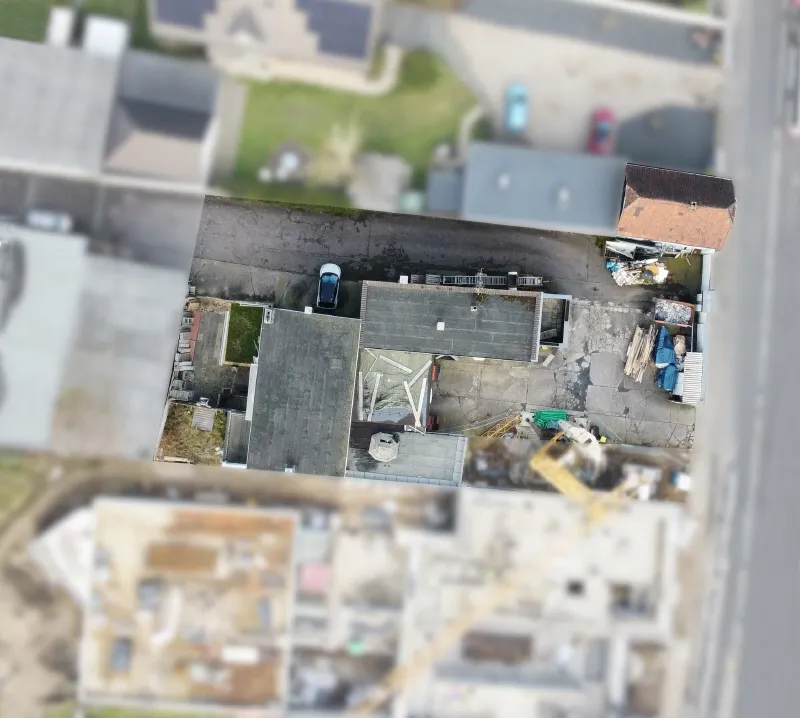 Nach einer Vorprüfung durch ein Architektenbüro ergibt sich eine mögliche Bebaubarkeit auf dem Grundstück mit zwei Wohnhäusern und 16 PKW Außenstellplätzen mit folgenden Eckdaten: