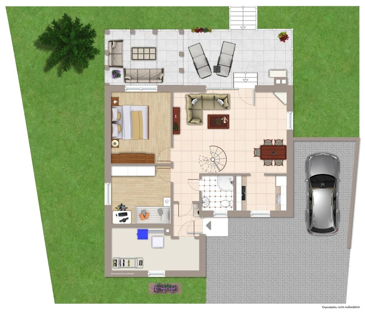 Der Weg in den Garten führt über eine schöne, teilüberdachte Terrasse. Der perfekte Ort für ein gemütliches Beisammensein im Kreise von Freunden und Familie. Umgeben von Natur kann man hier einfach mal den Blick schweifen lassen und den Moment genießen. Im Garten selber gibt es viel Platz, um Träume zu verwirklichen: Hier vielleicht ein kleiner Pool, dort ein Gemüsebeet, kreieren Sie ein Areal für Ihre persönlichen Genussmomente. Ein kleines Gartenhaus mit Stauraum für Geräte und Grillzubehör ist bereits vorhanden. Hier schlummert ein kleines Paradies!