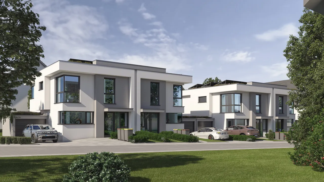 In attraktiver Wohnlage von Lohmar‑Birk entstehen moderne Doppelhaushälften in hochwertiger, massiver Bauweise. Das Projekt verfolgt das Ziel, zeitgemäßen und energieeffizienten Wohnraum für Familien und Paare zu schaffen. Klare Architektur, durchdachte Grundrisse und eine gehobene Ausstattung sorgen für ein überzeugendes Gesamtbild. Die Häuser werden schlüsselfertig errichtet und erfüllen sämtliche aktuellen Anforderungen des KfW-55-Standards. Jede Einheit bietet eine Wohnfläche von ca. 181 m² auf einem etwa 270 m² großen Grundstück. Die Fertigstellung ist für Dezember 2026 geplant.