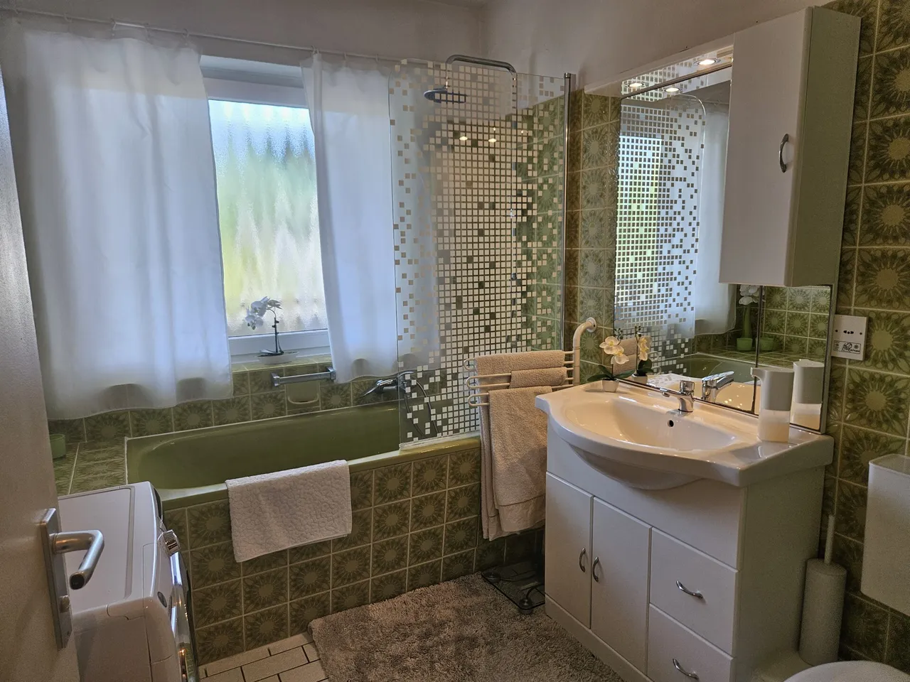 Das Tageslichtbad ist mit Wanne und einem Waschmaschinenanschluss ausgestattet.