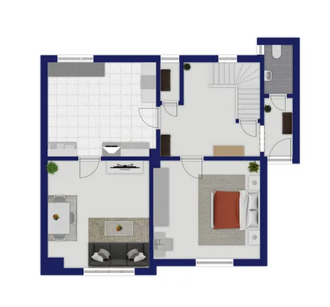Bereits beim Betreten der Wohnung empfängt Sie ein einladender Dielenbereich, von dem aus alle Räume optimal erreichbar sind. Das Herzstück bildet der helle Wohn- und Essbereich mit direktem Zugang zur Küche. Große Fensterflächen sorgen hier für eine freundliche, lichtdurchflutete Atmosphäre und schaffen ein angenehmes Wohngefühl. Das geräumige Schlafzimmer bietet ausreichend Platz für ein komfortables Schlafzimmer sowie zusätzliche Stellflächen.