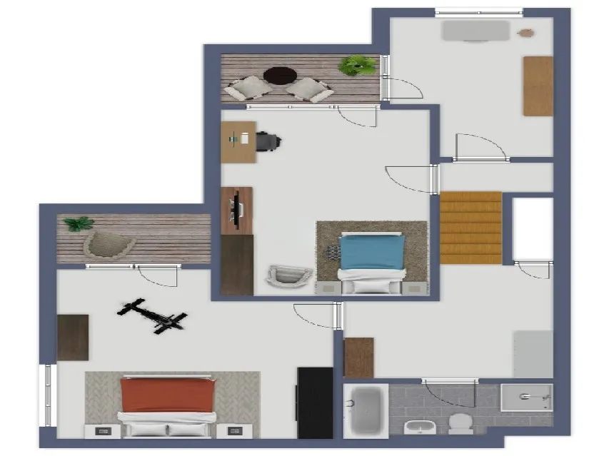 Maisonette über drei Geschosse, verbunden durch innenliegende Treppe