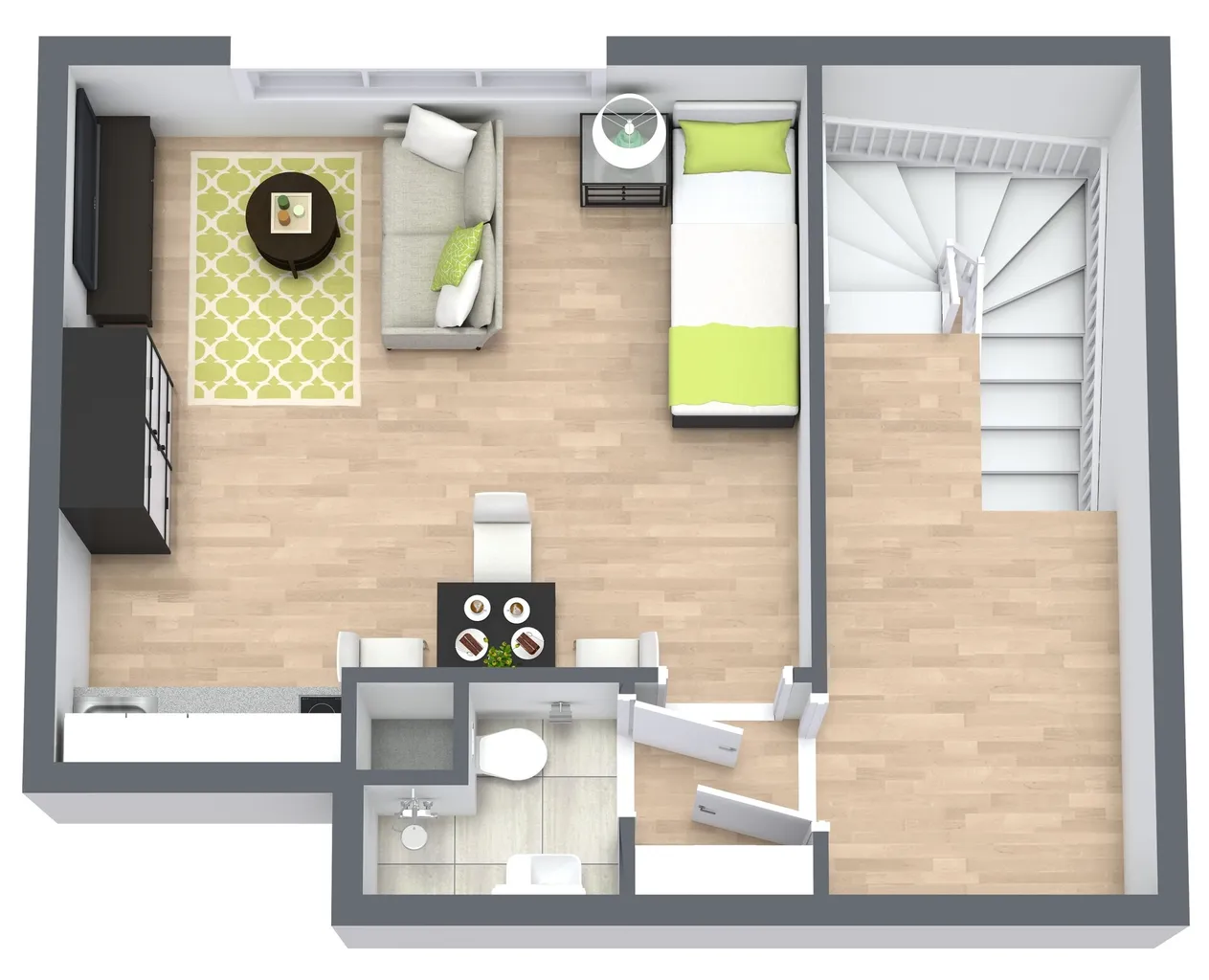 Diese kleine und moderne Wohnung befindet sich im zweiten Stock eines Gebäudes mit sechs kleinen Wohnungen. Die Wohnfläche beträgt 24m² und bietet genug Platz, um sich zu entspannen und zu Hause zu fühlen. Die Wohnung verfügt über ein Zimmer, das leer ist und darauf wartet, eingerichtet zu werden. Eine Einbauküche ist bereits vorhanden. Die Wohnung wurde komplett renoviert, das Bad ist auch saniert worden. Es gibt leider nur wenige Parkmöglichkeiten in der Nähe. Zum Glück kann für 50,- monatlich ein PKW-Stellplatz direkt vor der Haustür gemietet werden.