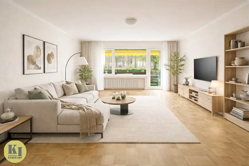 Zur Verdeutlichung haben wir einige Bilder mit KI modern eingerichtet und das Badezimmer umgestaltet.