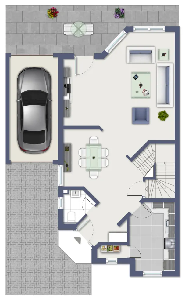- Garage mit Aussenstellplatz