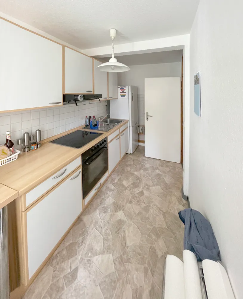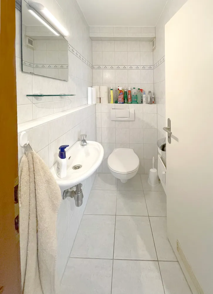 Kapitalanlage mit 2 Loggien und 3 Zimmern im 1. OG zu verkaufen. Diese seit 2000 vermietete, helle und sehr gut geschnittene Wohnung hat ca. 83 m² Wohnfläche, ein hell gefliestes Gäste-WC und ein hell gefliestes, innenliegendes Wannenbad mit Waschmaschinenanschluss.