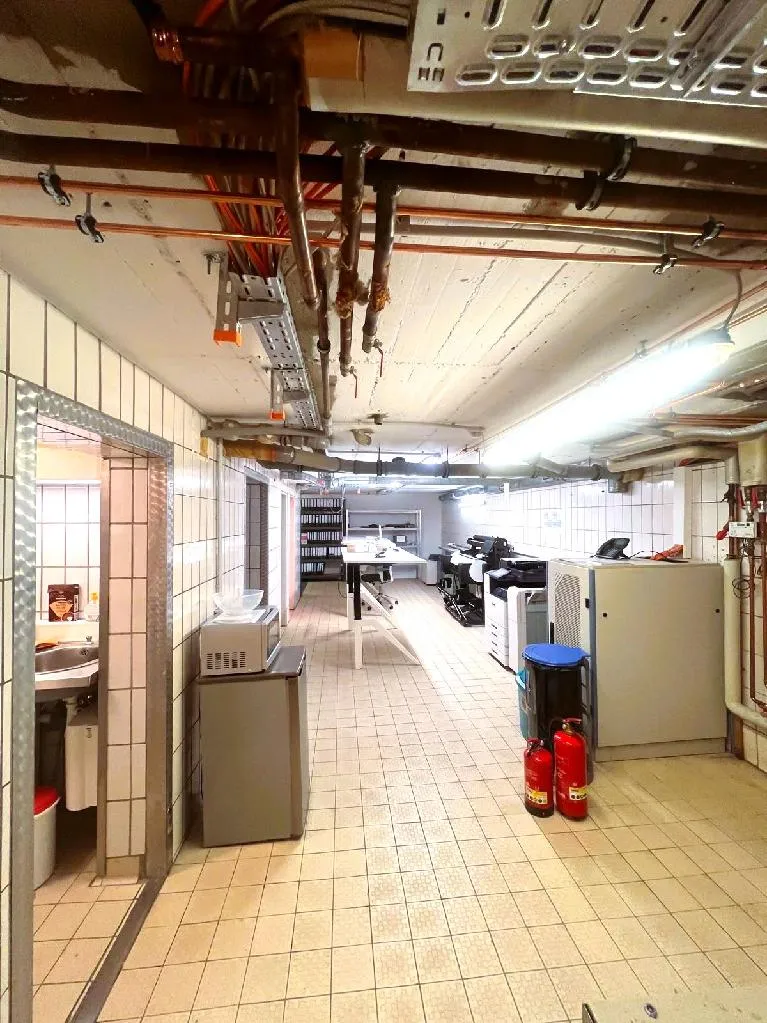 Das Untergeschoss bietet eine großzügige, offene Fläche, die vielseitig genutzt werden kann, sei es als Lagerraum oder für weitere betriebliche Anforderungen. Zusätzlich befinden sich hier zwei Aktenkeller, die zusätzlichen Stauraum für Dokumente oder Materialien bieten. Ein Technikraum ist ebenfalls vorhanden und sorgt für die zentrale Versorgung des Objekts. Eine Teeküche im Untergeschoss integriert. Ein weiteres WC rundet das Angebot im Untergeschoss ab.