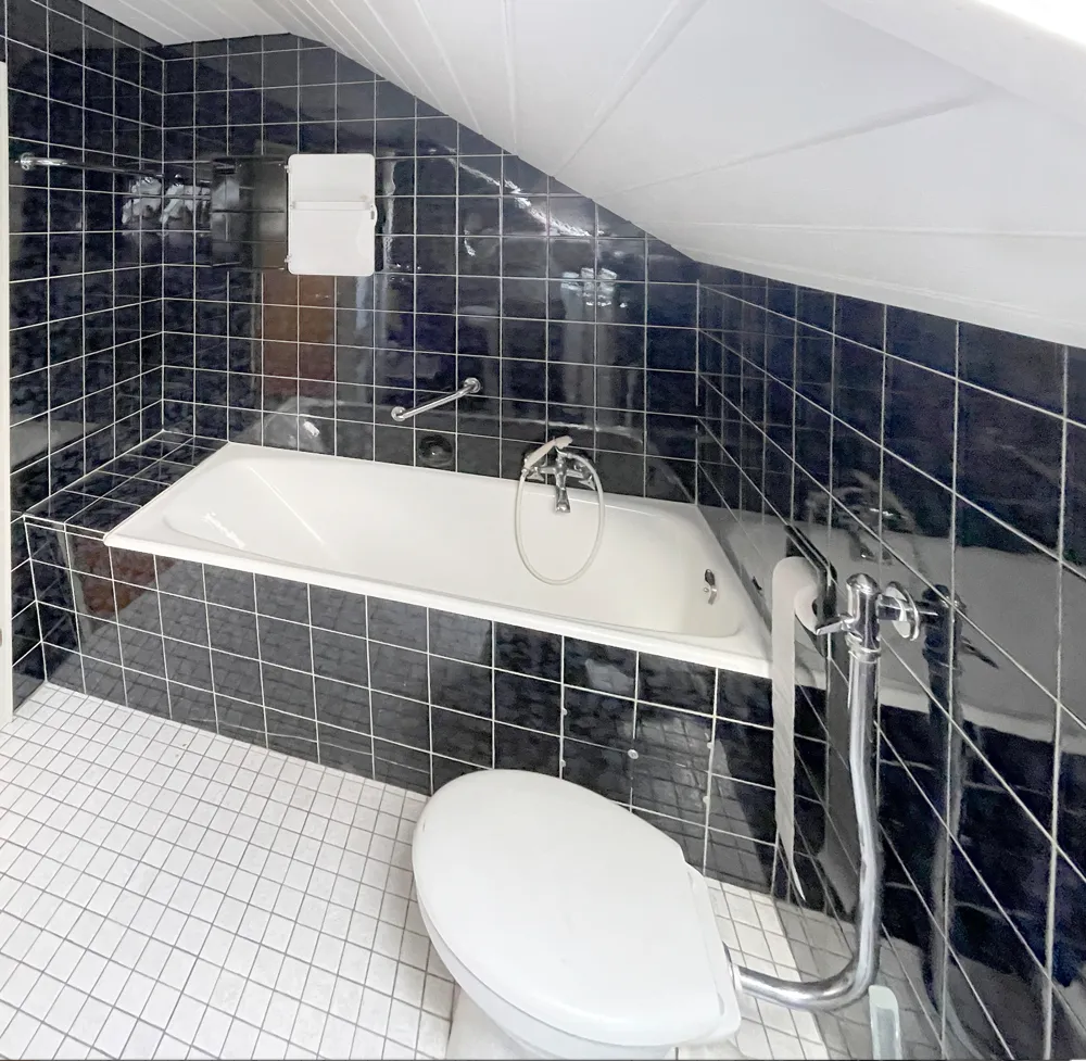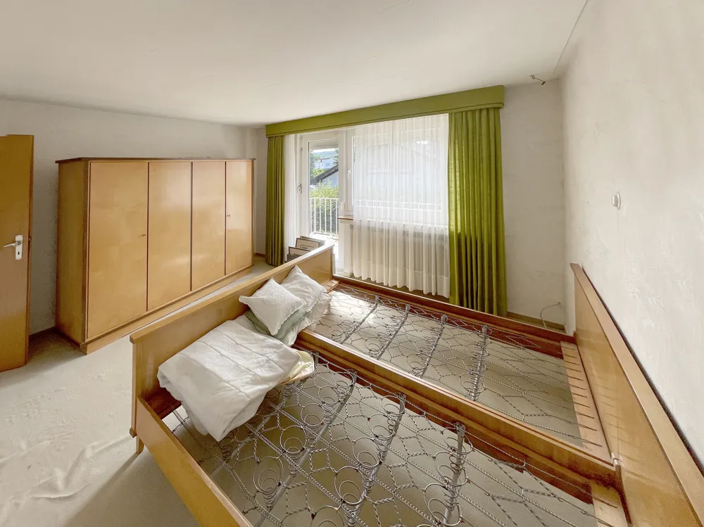 Im Obergeschoss befinden sich 3 Schlafzimmer von denen eines den Zugang zum Balkon hat. Das Tageslichtbadezimmer verfügt über eine Badewanne und Dusche und unter der Schräge befindet sich noch Stauraum, der geschickt versteckt ist.