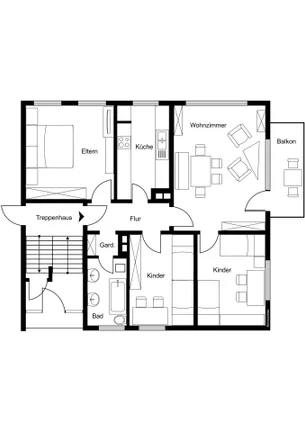 Wohnung 1: 3 Zimmer, ca. 70,79 m² – vermietet seit 2004, Kaltmiete 617,79 €