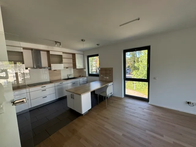 Ein besonderes Highlight ist die offen gestaltete Küche, die harmonisch in den Wohn- und Essbereich übergeht. Eine integrierte Sitz- und Stauraumlösung trennt die Bereiche optisch und schafft zusätzlichen Komfort. Die Einbauküche ist vollständig ausgestattet und im Mietpreis enthalten.
