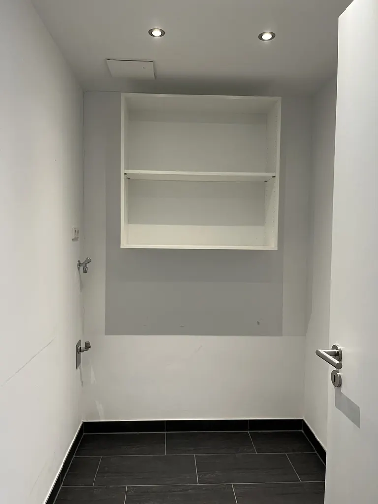 Ein praktischer Abstellraum innerhalb der Wohnung sorgt für zusätzlichen Stauraum. Hier sind auch Anschlüsse für Waschmaschine und Trockner vorhanden. Ein Aufzug im Gebäude ermöglicht zudem einen bequemen Zugang zu allen Etagen.