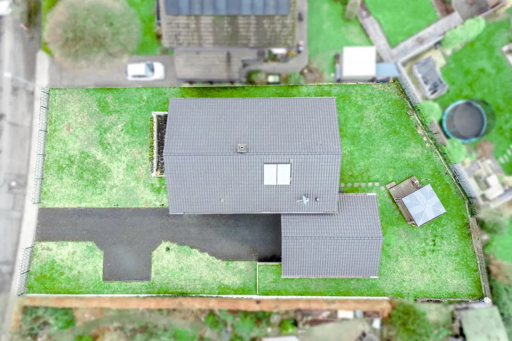 Ein besonderes Highlight ist die großzügige, ca. 44,7 m² große Doppelgarage mit Satteldach. Sie ist gefliest, verfügt über ein elektrisch betriebenes Tor, einen Wasseranschluss sowie einen direkten Zugang in den rückwärtigen Gartenbereich. Zusätzlich stehen zwei Stellplätze unmittelbar vor der Garage sowie zwei weitere gepflasterte Stellflächen in der Einfahrt zur Verfügung.