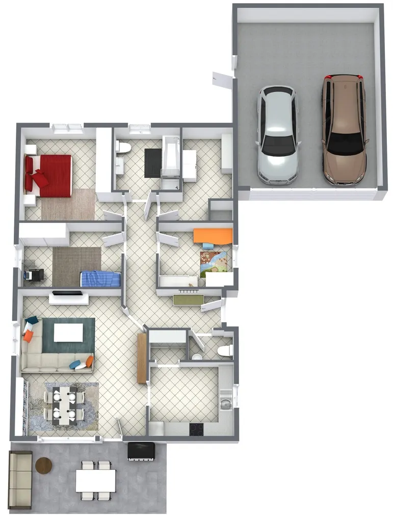 + Große, geflieste Doppelgarage (ca. 44,7 m²) mit elektrischem Tor und Wasseranschluss