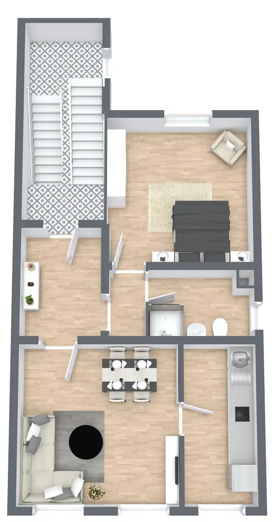 Aktuell befinden sich in dem Mehrfamilienhaus drei vermietete Wohnungen (Erd-, 1.- und 2. Obergeschoss). Im Dachgeschoss könnte vermutlich eine vierte Einheit geschaffen werden - dies ist jedoch mit dem zuständigen Bauordnungsamt der Stadt Bad Honnef abzustimmen. Das in wohnraumähnlicher Qualität ausgebaute Dachgeschoss dient derzeit als Hobbyraum.