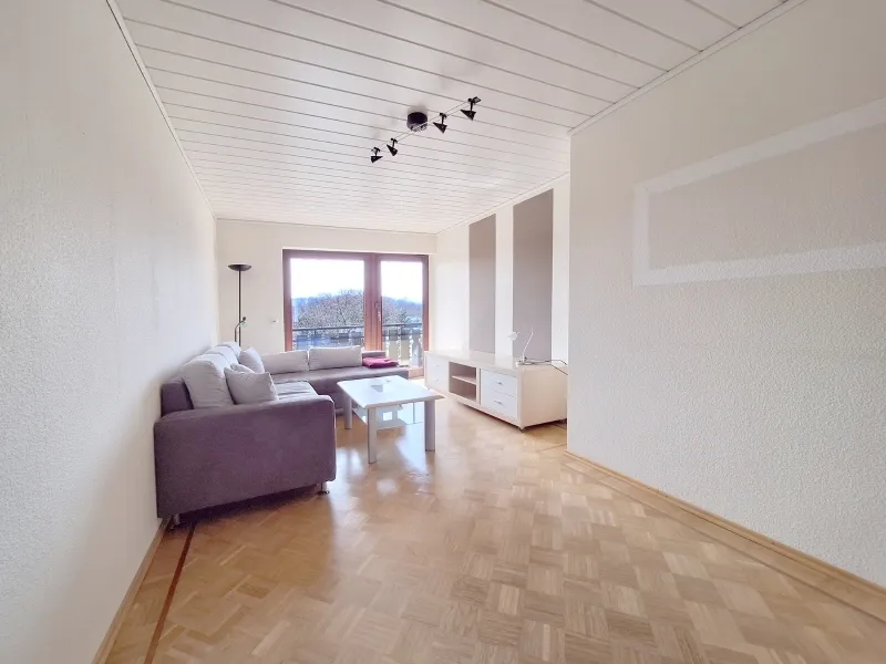 Auch das Obergeschoss bildet auf ca. 66 m² eine gut geschnittene 2-Zimmerwohnung. Die angegebene Wohnfläche verteilt sich hier auf Wohnzimmer, Schlafzimmer (beide Zimmer mit Zugang zum großzügigen Balkon), Tageslichtbad mit Badewanne, Hauswirtschaftsraum, Flur und Küche.
