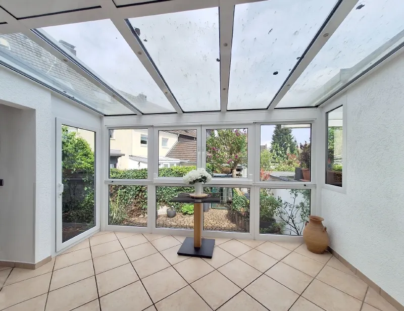 Im Erdgeschoss bietet diese Doppelhaushälfte Ihnen, auf ca. 62,20 m² Wohnfläche, Flur, Büro/Kinderzimmer, Küche mit Essplatz, Tageslicht-Duschbad, Wohn-/Esszimmer und Wintergarten. Vom Wintergarten aus erreichen Sie den liebevoll angelegten Außenbereich des Hauses.