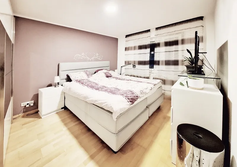 Schon nach Betreten der Wohnung fällt schnell auf, dass hier auf viel Helligkeit und Tageslicht wert gelegt wurde: die helle Ausstattung und die Fenster der Wohn- und Schlafräume lassen die gesamte Wohnung freundlich erscheinen.