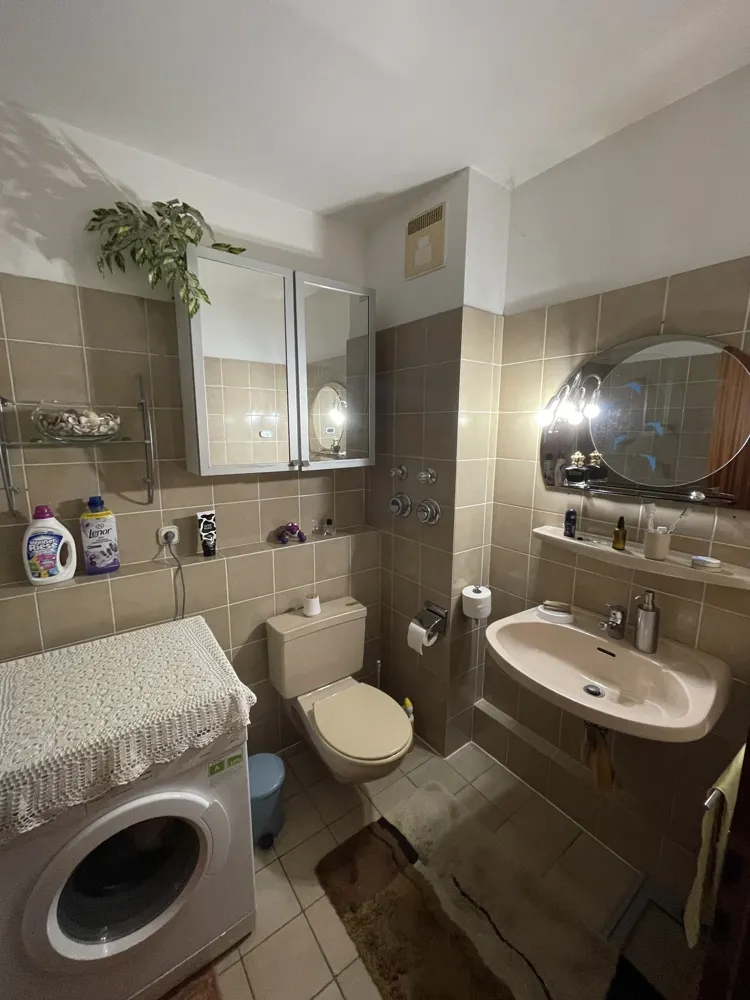 Die Wohnung ist mit 2 Bädern ausgestattet, ein kleines Duschbad und ein grösseres Wannenbad mit Waschmaschinenanschluss, beide im Retro-Charme der 1980.
