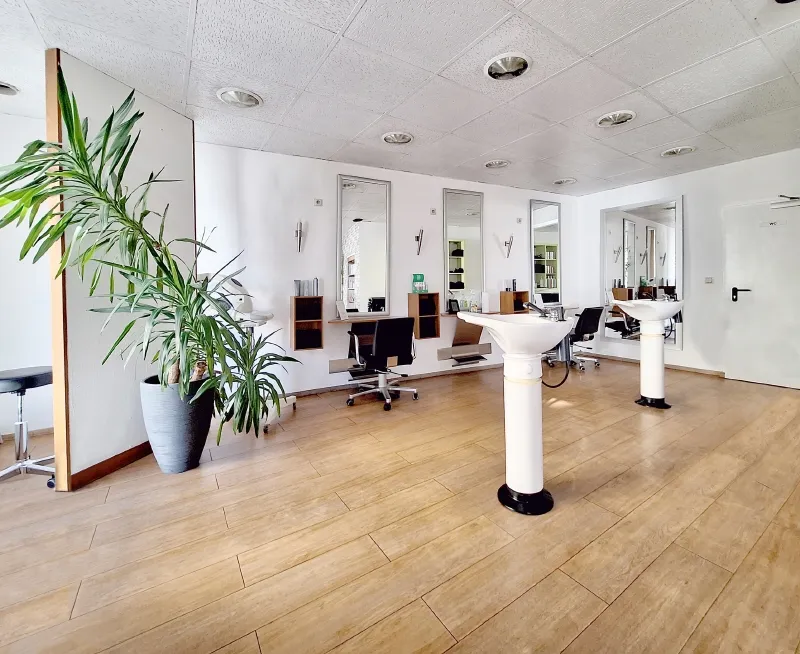 Das Haus teilt sich auf in eine Gewerbefläche, die seit jeher schon als Friseursalon genutzt wurde sowie in zwei Wohneinheiten im Ober- und Dachgeschoss auf.