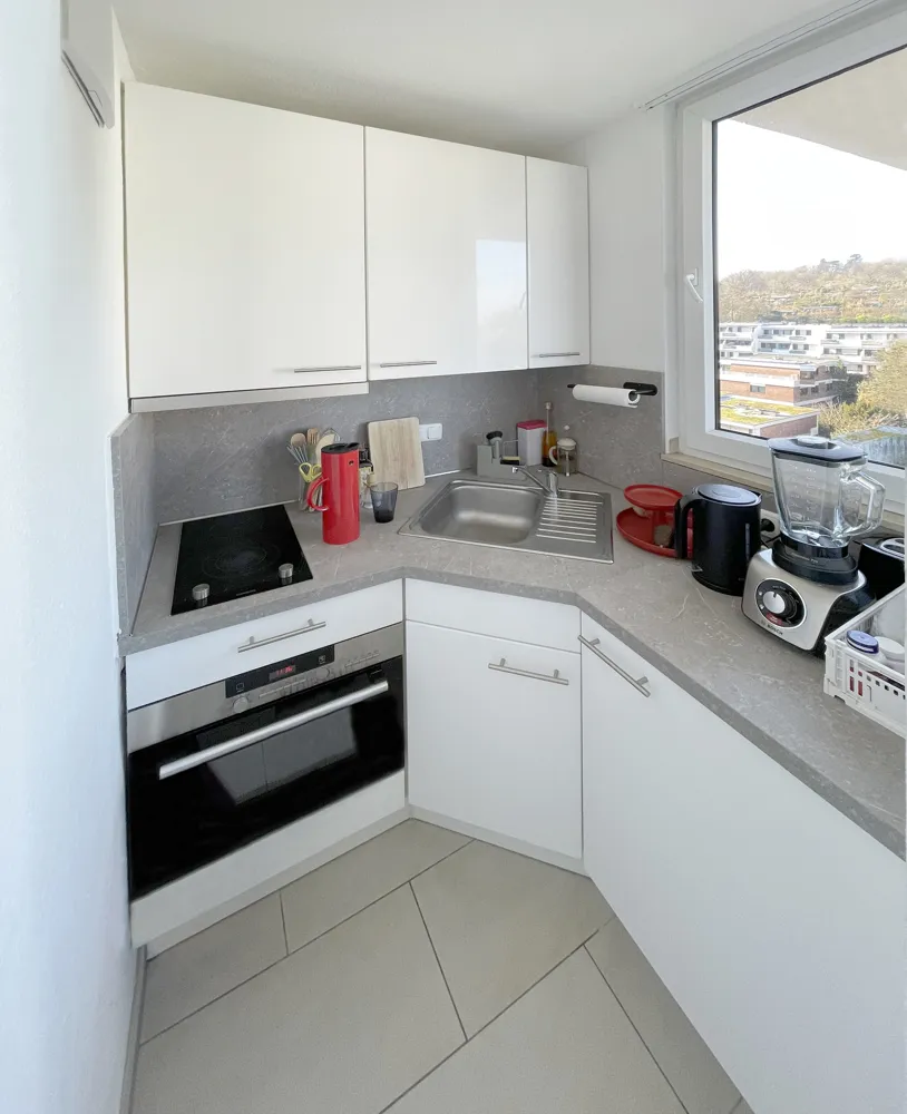 2015 wurde die Wohnung vollumfänglich saniert (Elektrik, Oberböden, Bad und Einbauküche). Das Appartement ist hell und geräumig und der Balkon ist mit Abendsonne und Fernblick gesegnet. Die Einbauküche gehört zur Wohnung und das hell geflieste Duschbad ist innenliegend. Der praktische Abstellraum bietet zusätzlichen Stauraum.