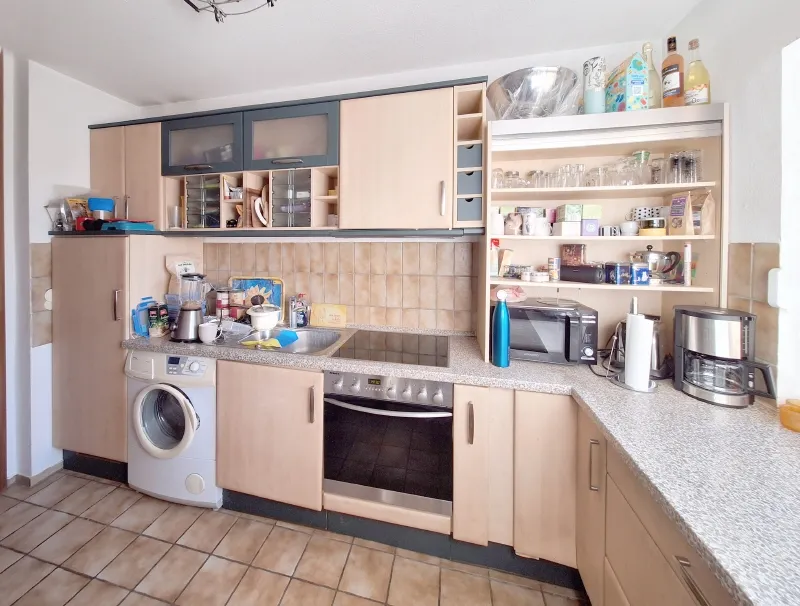 Ein TG-Stellplatz in der hauseigenen Tiefgarage, Gemeinschaftstrockenraum, Fahrradkeller und ein großer Kellerraum runden das Angebot ab.