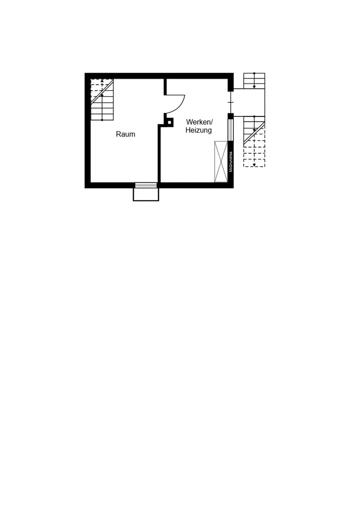 Die zweite Wohneinheit ist vollständig getrennt: Der Zugang erfolgt rechts am Haus vorbei über eine Treppe nach unten in die untere Etage. Sie ist komplett unabhängig von der zu verkaufenden Einheit und hat keinerlei Berührungspunkte im täglichen Wohnen.